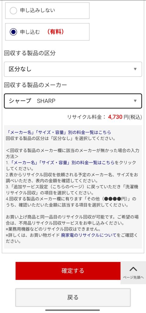 詳しくは過去記事をご覧いただきたいのですが、コジマネットは長期保証が標準付帯。一方でヤマダ電機は当該機種の場合は追加料金が必要です。また、収集運搬料金がコジマの方が500円安いため、コジマで買う事に。