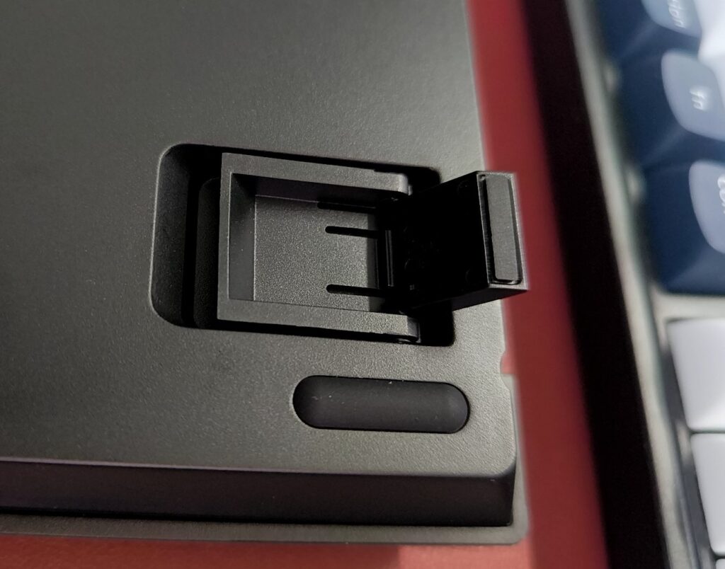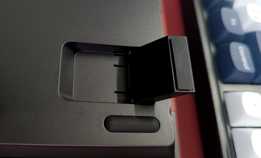 私はどちらかというと傾斜が付いているのが好みなので、必ず脚を立てて傾斜をつけます。Keychron V5 Maxの脚は、その出し方により高さが2段階存在。より、好みの傾斜に調整が可能になっています。細かい配慮が嬉しいですね。
